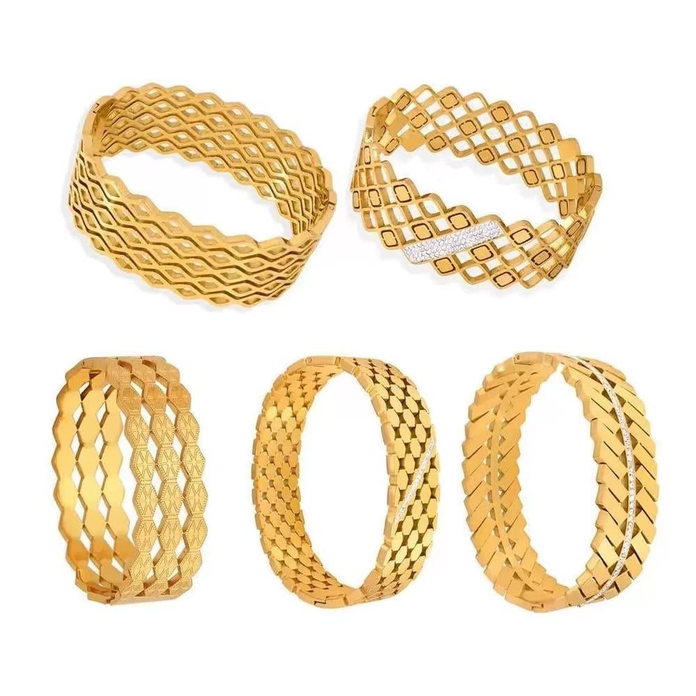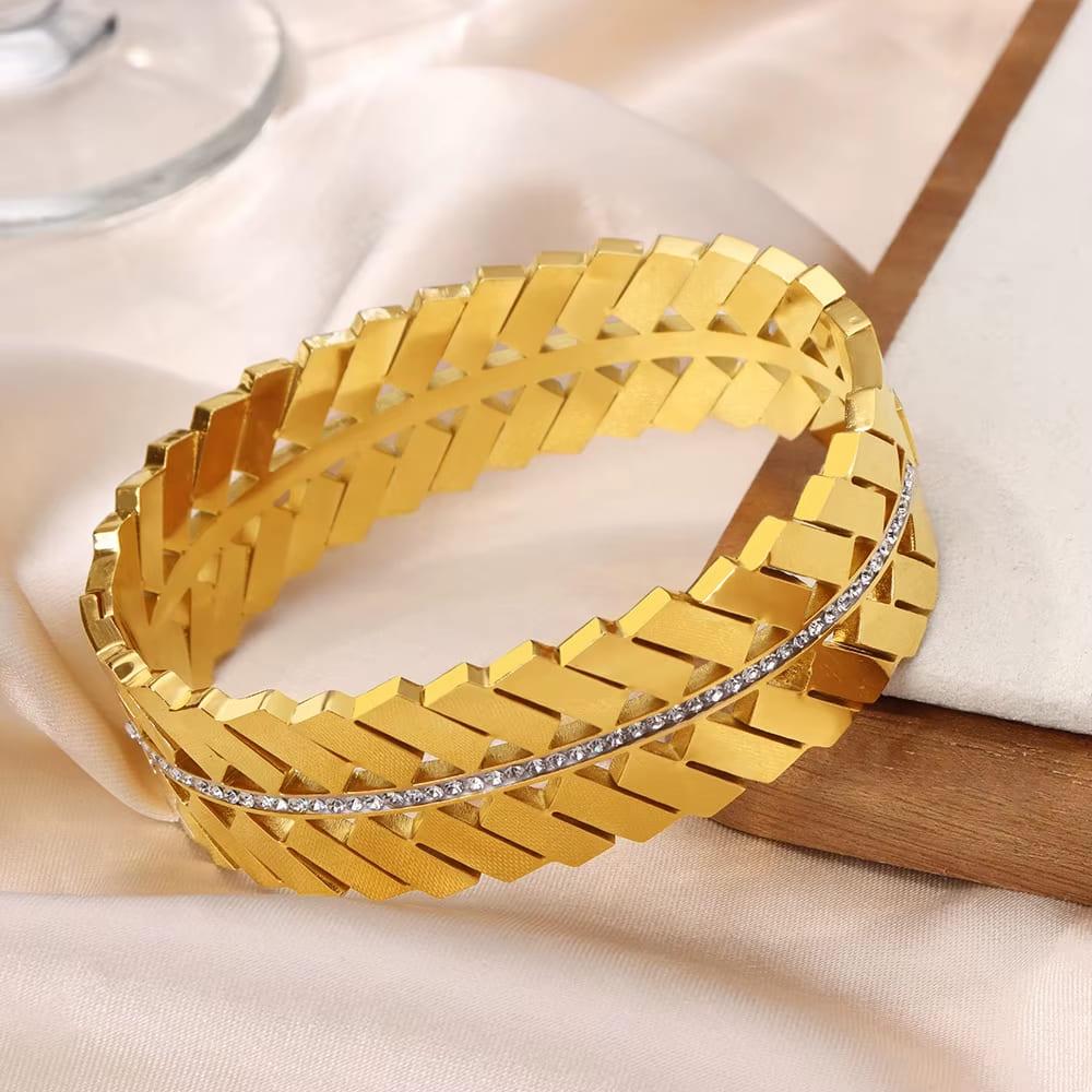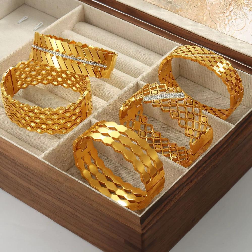 اساور ستانلس فاخرة مطلية بالذهب 18 ق، تجمع بين التصميم العصري والمتانة العالية لتمنحك إطلالة أنيقة وعملية في نفس الوقت.